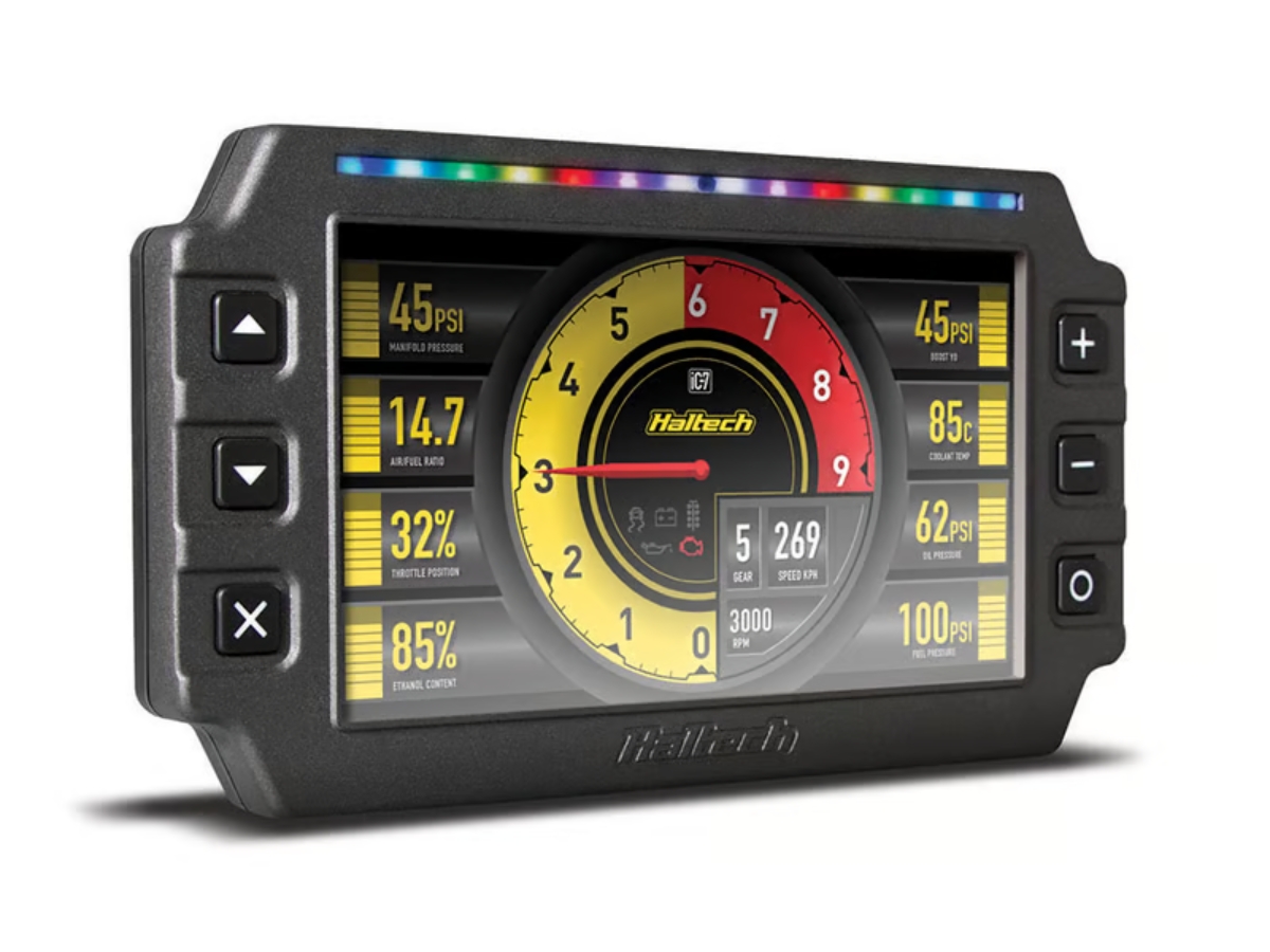 With a crisp, clear and full colour display, the all new Haltech iC-7 Display Dash lets you see things in a brand new way. Designed and manufactured in Australia with motoring enthusiasts in mind, the iC-7 offers market-leading features in a unique, state-of-the-art package. Featuring auto-dimming ambient light reactive brightness, user-programmable multi-colour shift light bar, the iC-7 connects directly to all current Haltech ECUs via a CAN network. The OBD-II iC-7 is preconfigured to connect directly (via CAN) to most late model vehicles (approx 2008-on) using the factory OBD-II port.